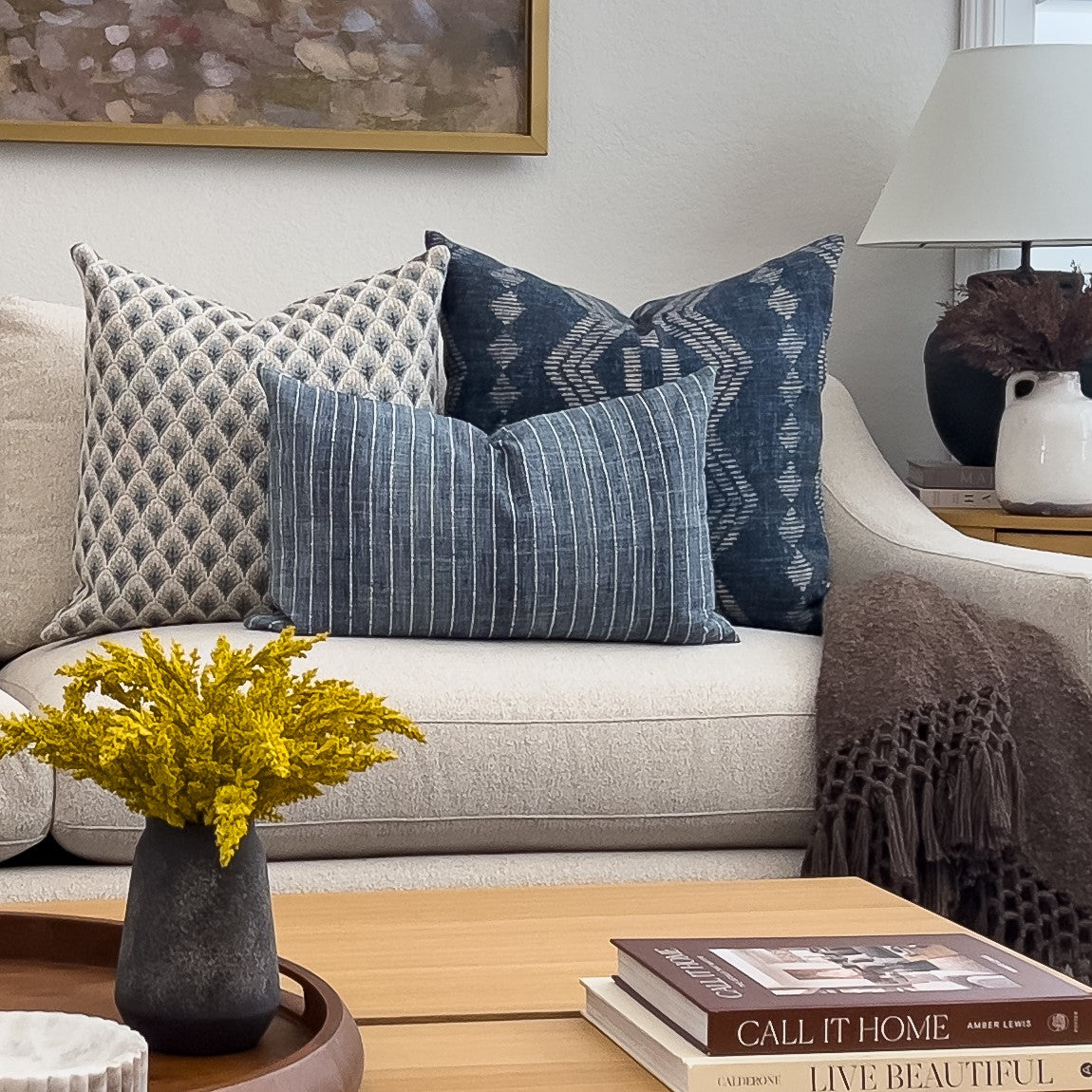 Bundle and save on this eclectic mix of patterned pillows for your living room.