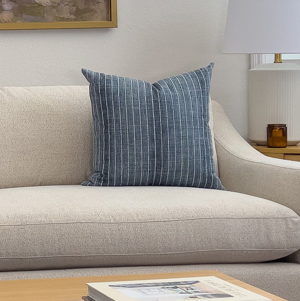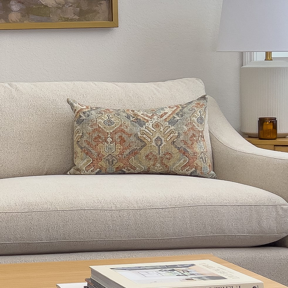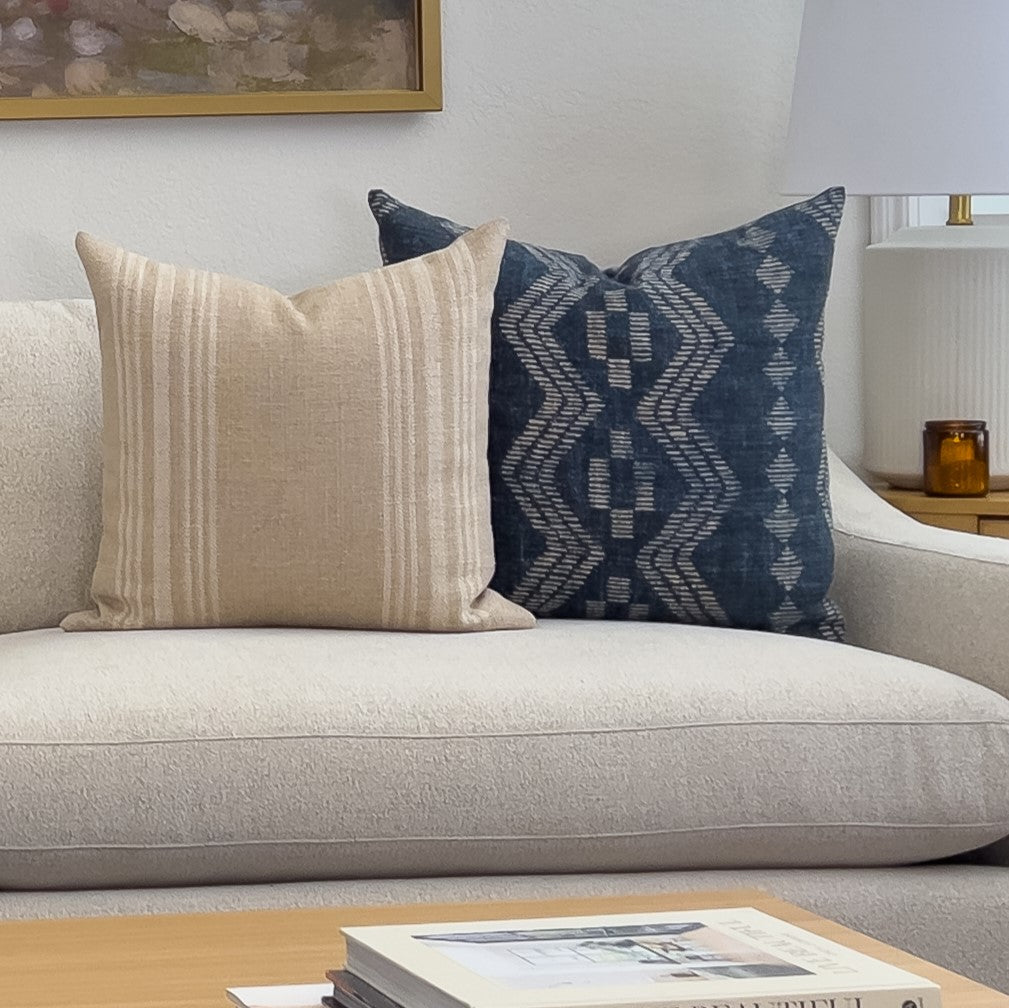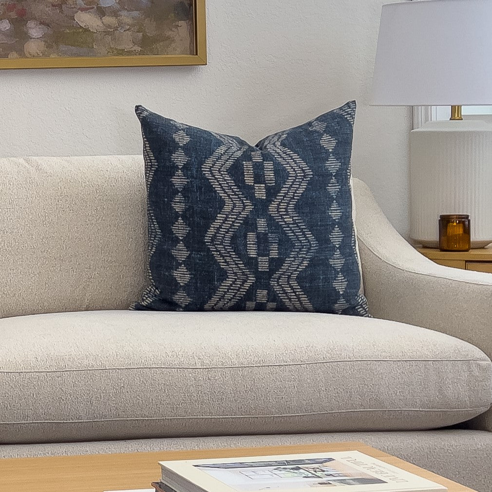 Bundle and save 10% on this eclectic mix of patterned pillows. Distressed denim and blue ombre pillows layer beautifully with the warm terracotta, cool shades of blue and gray, and soft neutrals in the stunning Kilim-inspired print at the forefront.