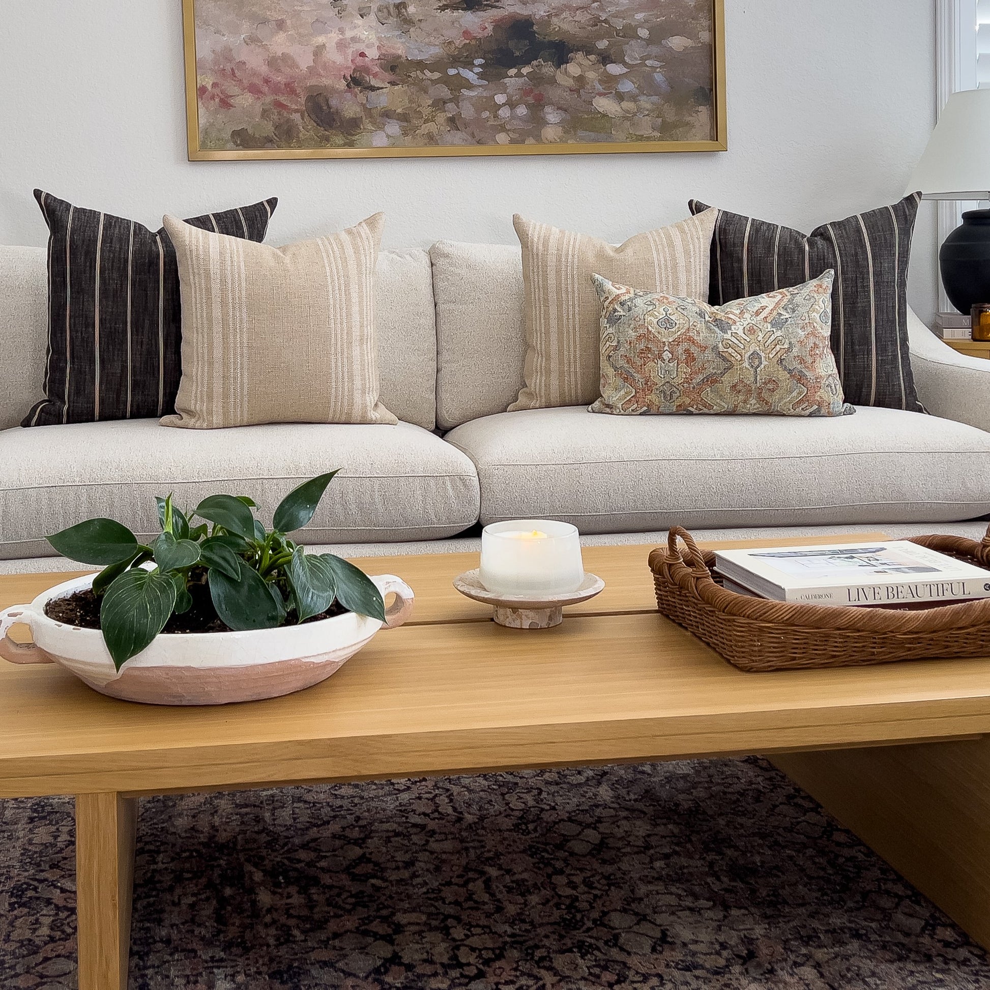 Pillow inserts are sold separately. Click here to add the 5-Piece Down Alternative pillow insert set sized specifically for this pillow cover collection.