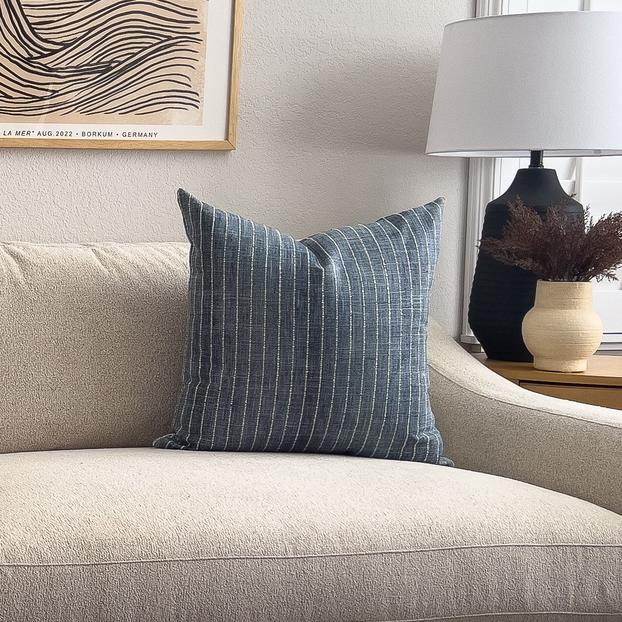 (1) 22"x22" Ticking Striped Pillow Cover